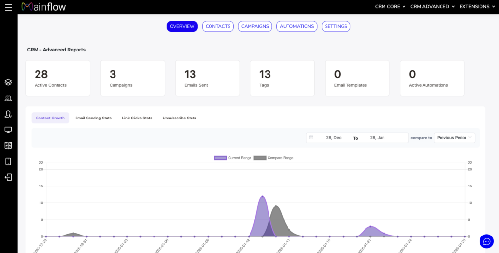 Today, in 2026, Mainflow CRM is a fully-fledged CRM platform. We have 10 different apps that are all sourced and curated to help micro and small businesses grow and scale. So the focus of Mainflow is to support all commercial and customer oriented activities. All apps are designed and integrated to help you grow by managing and automating your marketing, sales and customer service activities. What our customers mostly look for is the CRM part, that is, contact management, segmentation, email marketing automation, sales pipelines and task management.